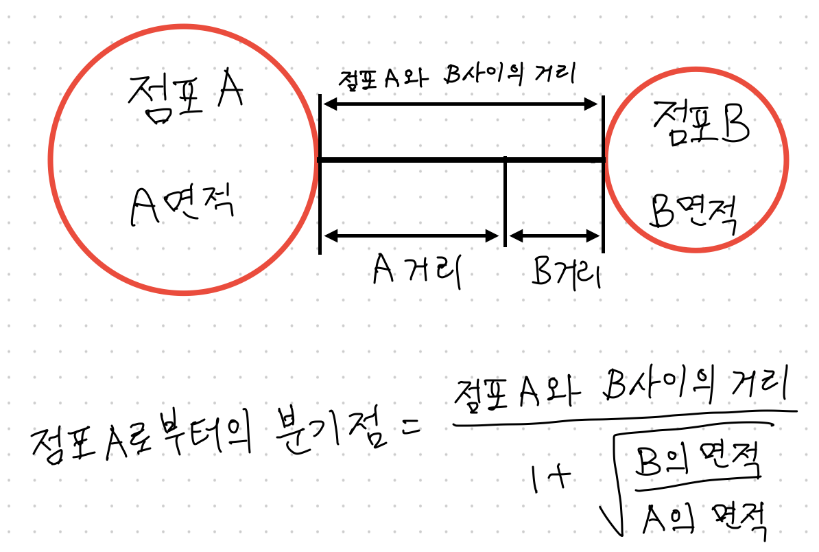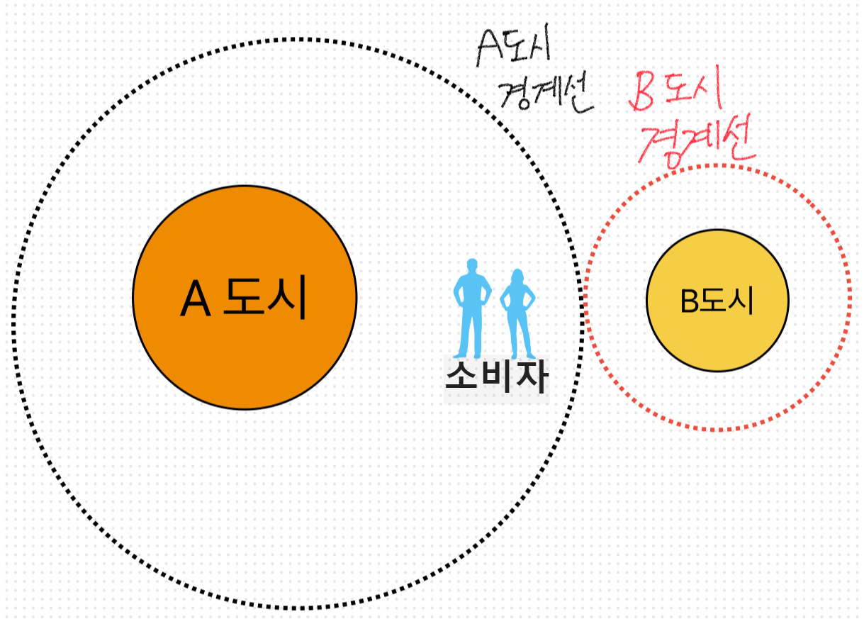 - 하나의 상권에 소비자들이 균등하게 분포